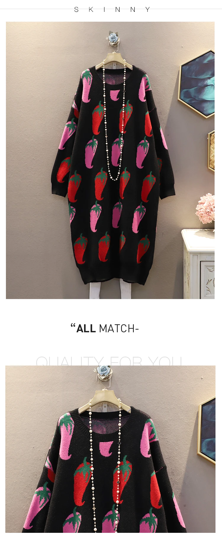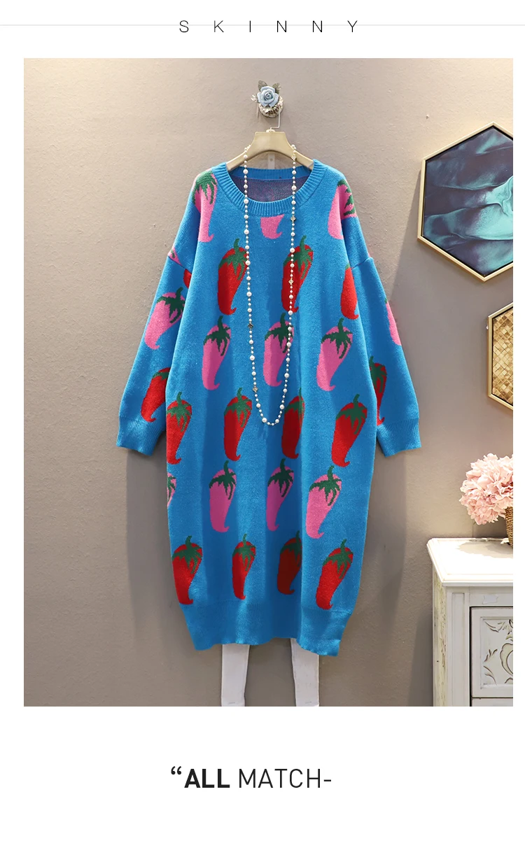 Осенние Пуловеры с принтом; Трикотажное платье; Повседневное платье-свитер; QYF3856