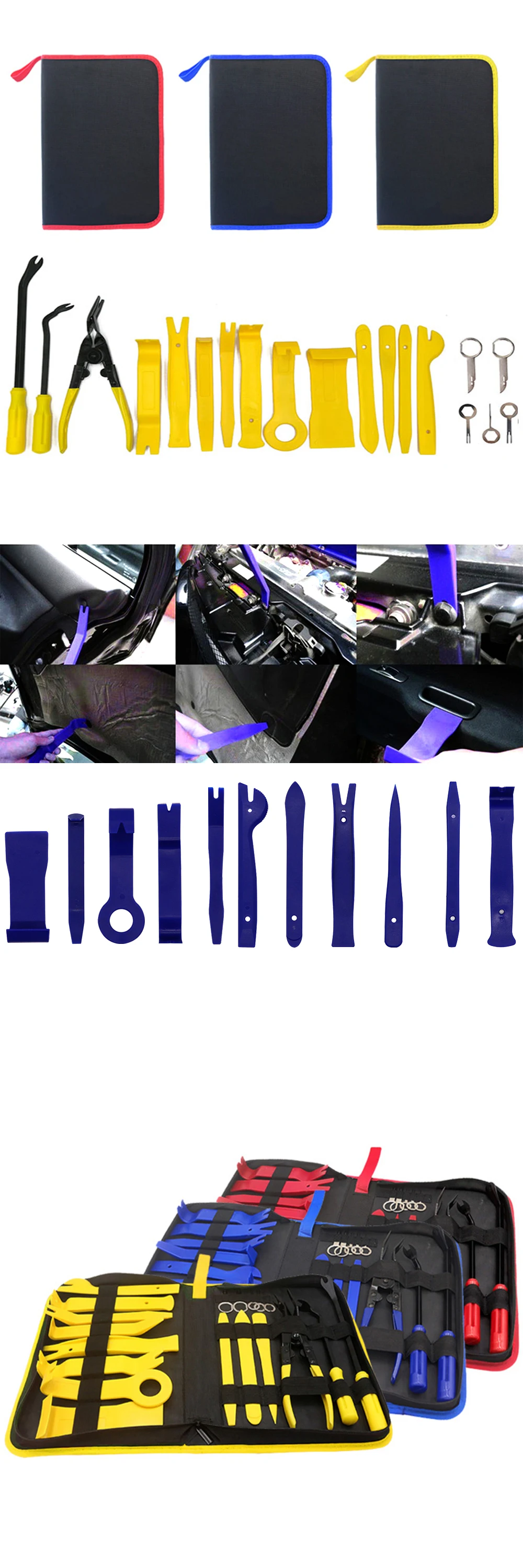 Набор инструментов подходит к любой модели автомобиля, это может уменьшить возможность истирания внутреннего украшения автомобиля. С дизайном уникальной защиты от царапин и трудосбережения.
