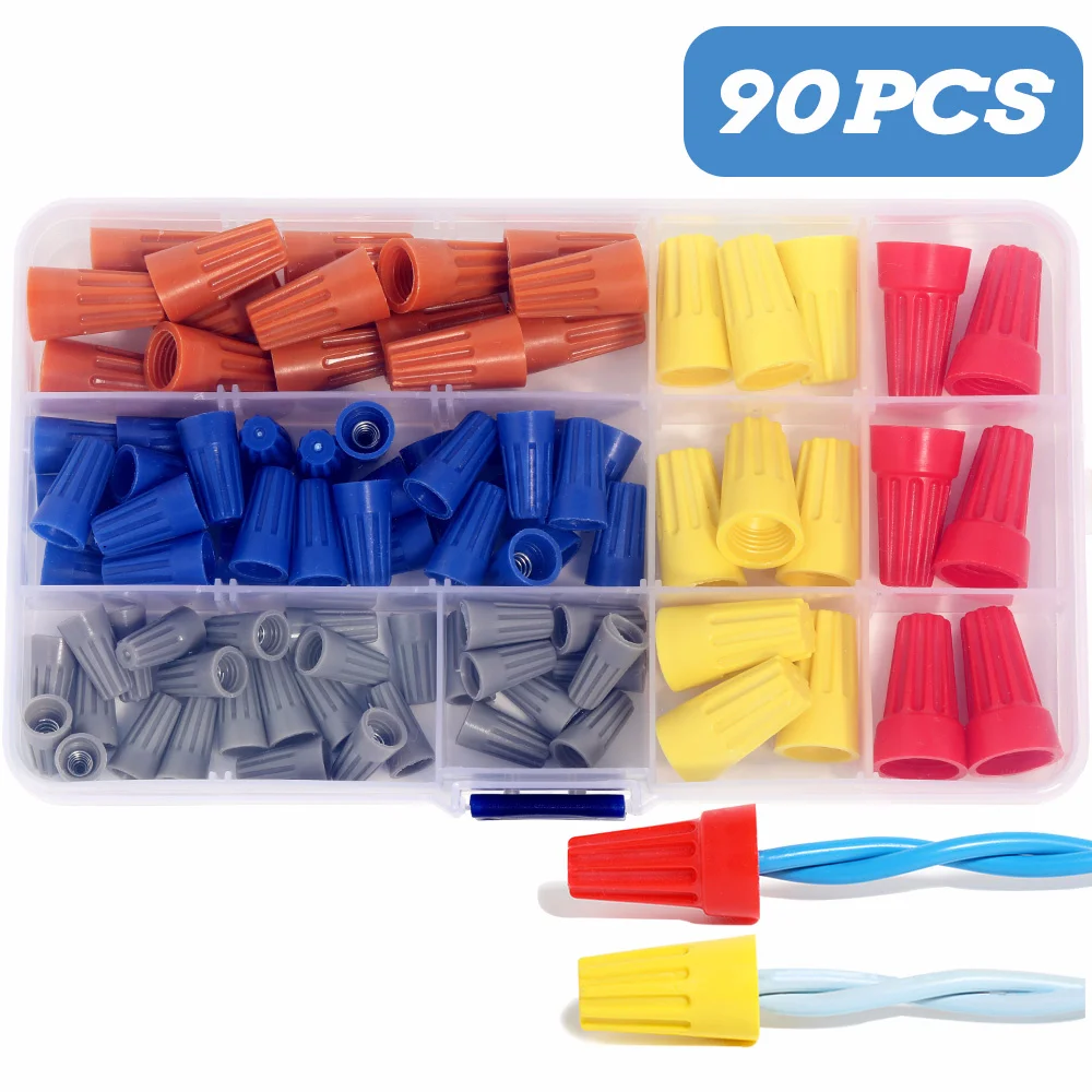 90 шт. / Кор. Набор наборов с винтовой крышкой W / spriing твист вставка сращивающий провод кабель пластиковый тип fastons коннекторные клеммы аксессуары