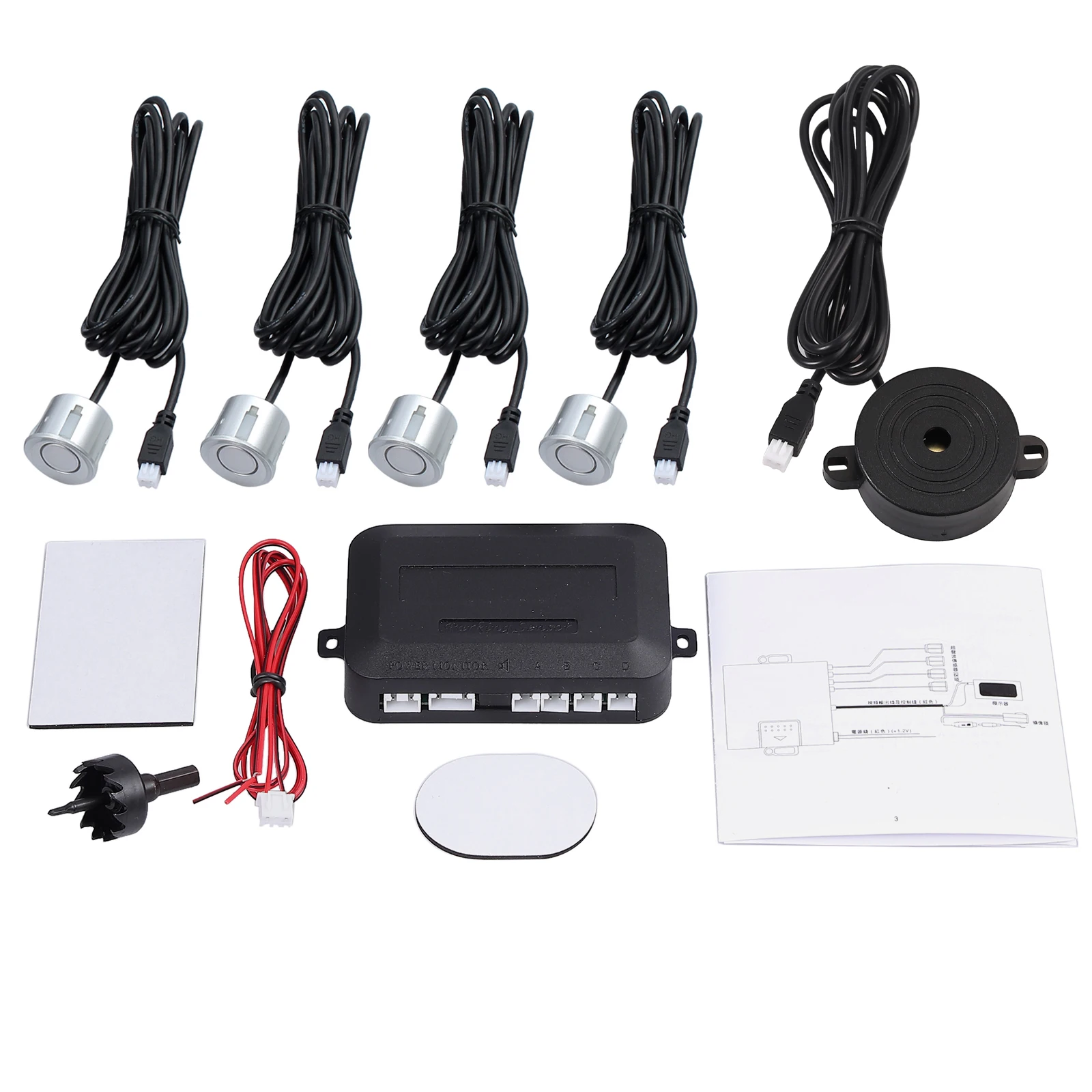 Система парковки подходит практически для всех типов транспортных средств, что обеспечивает вам наилучшую безопасность при парковке и маневрировании. Этот набор состоит из парковочного аппарата с 4 ультразвуковыми датчиками и громкоговорителем. После легкой установки система работает полностью автоматически. Благодаря небольшим датчикам вы можете наблюдать за питательным предметом. Звуковой сигнал будет звучать звуковое предупреждение, чтобы предотвратить повреждение транспортного средства. Сигнал бипера быстрый шаг за шагом, ближе к препятствию, более быстрый сигнал тревоги. Встроенный 4-датчик с громкой связью Технические характеристики: Рабочее напряжение: 12 В постоянного тока Потребляемая мощность: макс. 3 Вт Рабочая температура: от-40 °C до + 80 °C Диаметр датчика: 23 мм Диапазон измерений: 0,3 m до 1,5 m Цвет изделия: серебристый Свойства: Датчики высокой чувствительности, дают более точную информацию о сигнале. Сигнализация по различным сигналам тревоги, Идеально подходит практически для всех типов транспортных средств. Высокое качество и простота установки. Посылка: 4 x датчики с 2,3 м кабель (серебро) 1 x дрель 1 х Динамик с 2,5 м кабель 1 х блок управления 1 х Кабель питания 1 x Руководство пользователя