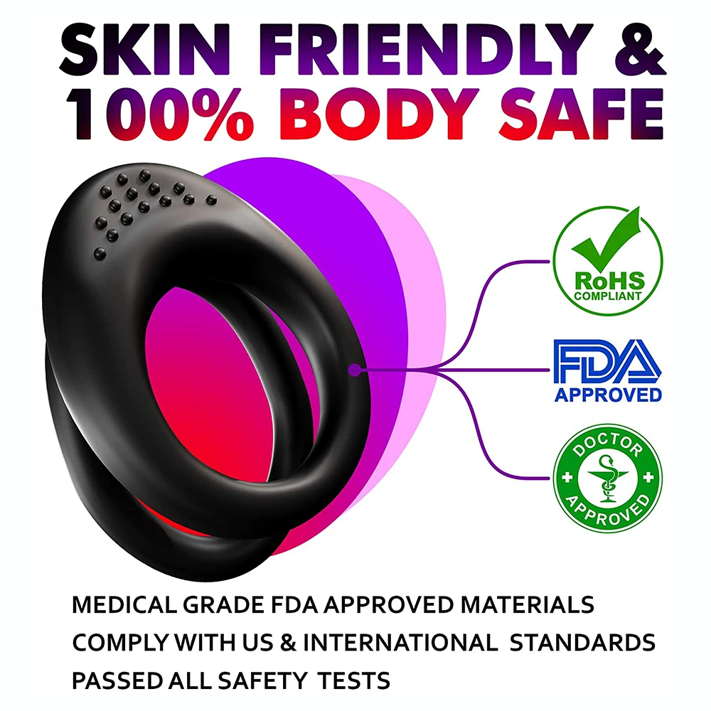 ✔Мягкий и безопасный-Кольцо на пенис изготовлено из силикона, телесного мягкого материала для большинства людей с химической чувствительностью. Гладкий силикон на ощупь мягкий и легко очищается водой с мылом.