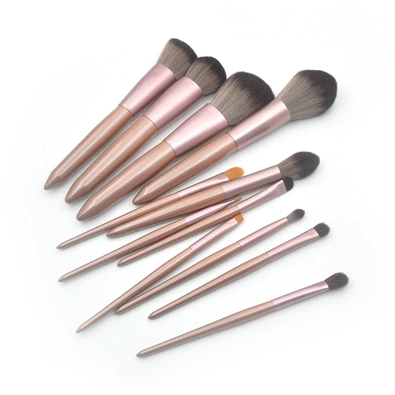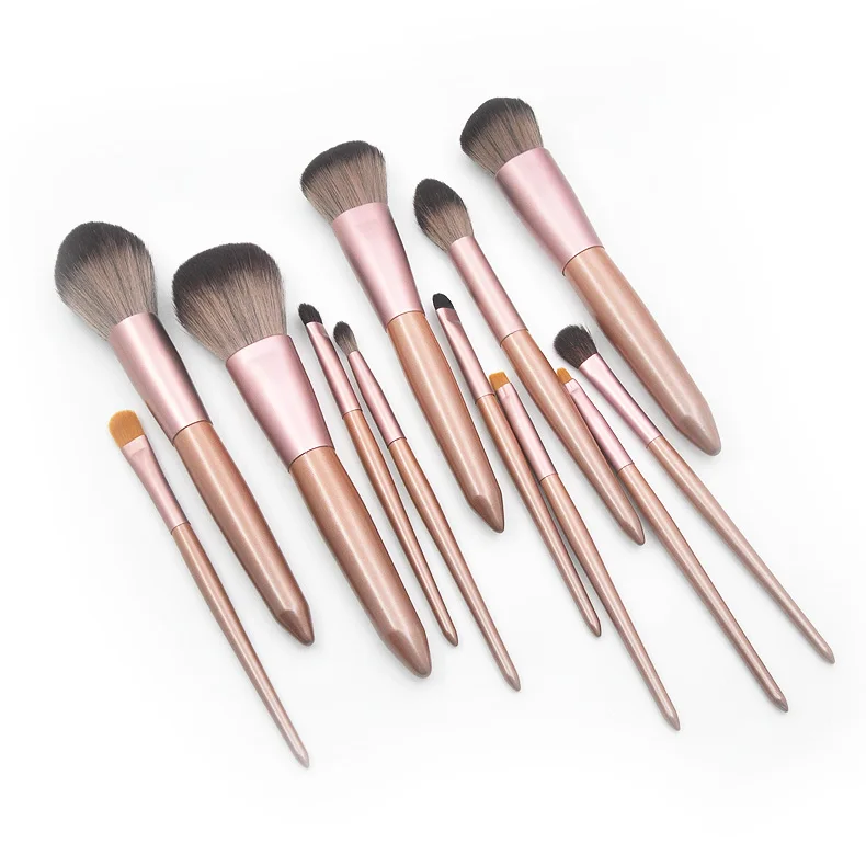 Новинка, горячая Распродажа, 12 штук, коническая деревянная ручка, набор кистей для макияжа, маленький виноградный коричневый волокнистый волос, свободный порошок, косметический инструмент