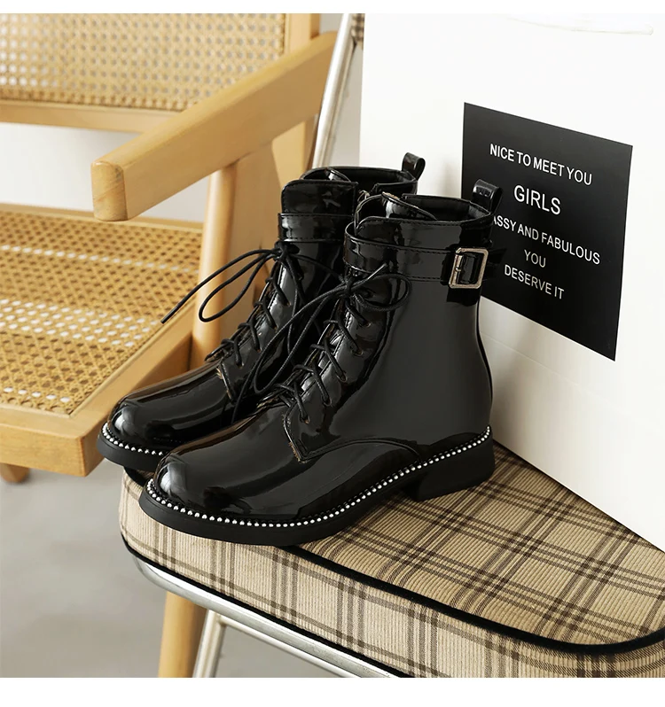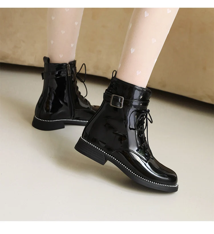 Женские ботильоны из лакированной кожи с перекрестными ремешками на молнии сбоку; Блестящие полусапожки из лакированной кожи с ремешком на щиколотке и пряжкой; Дешевая Бесплатная доставка