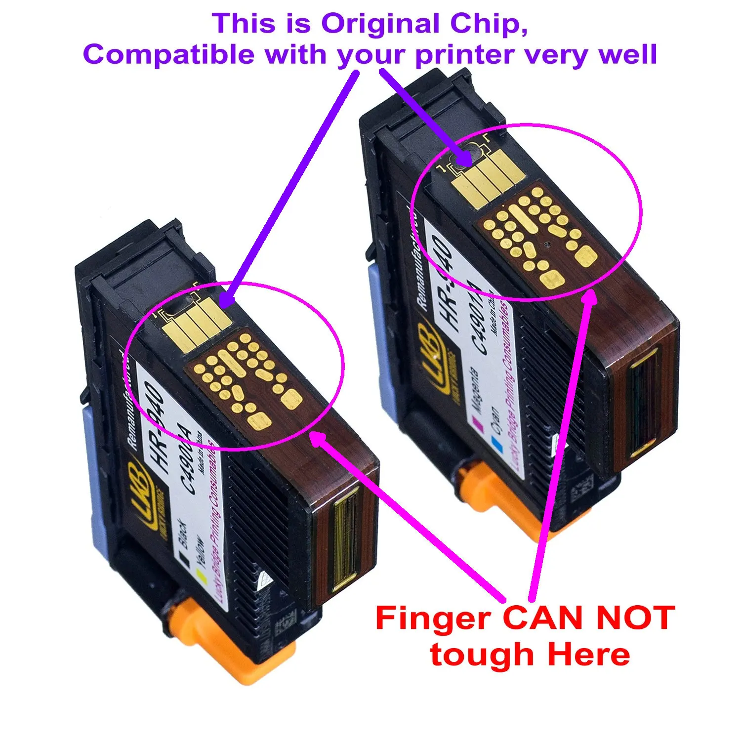 1) новейший обновленный чип, чип никогда не используется, который может быть признан принтером очень хорошо. Таким образом, качество выше, чем переработанные печатающие головки.