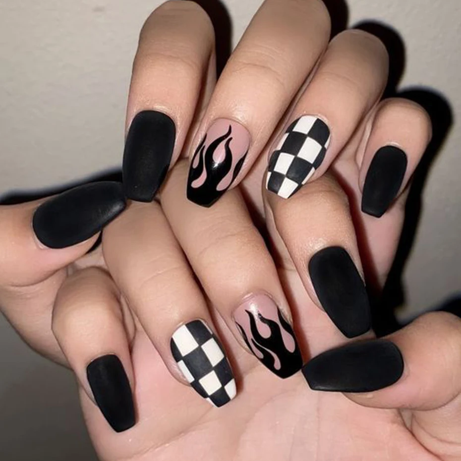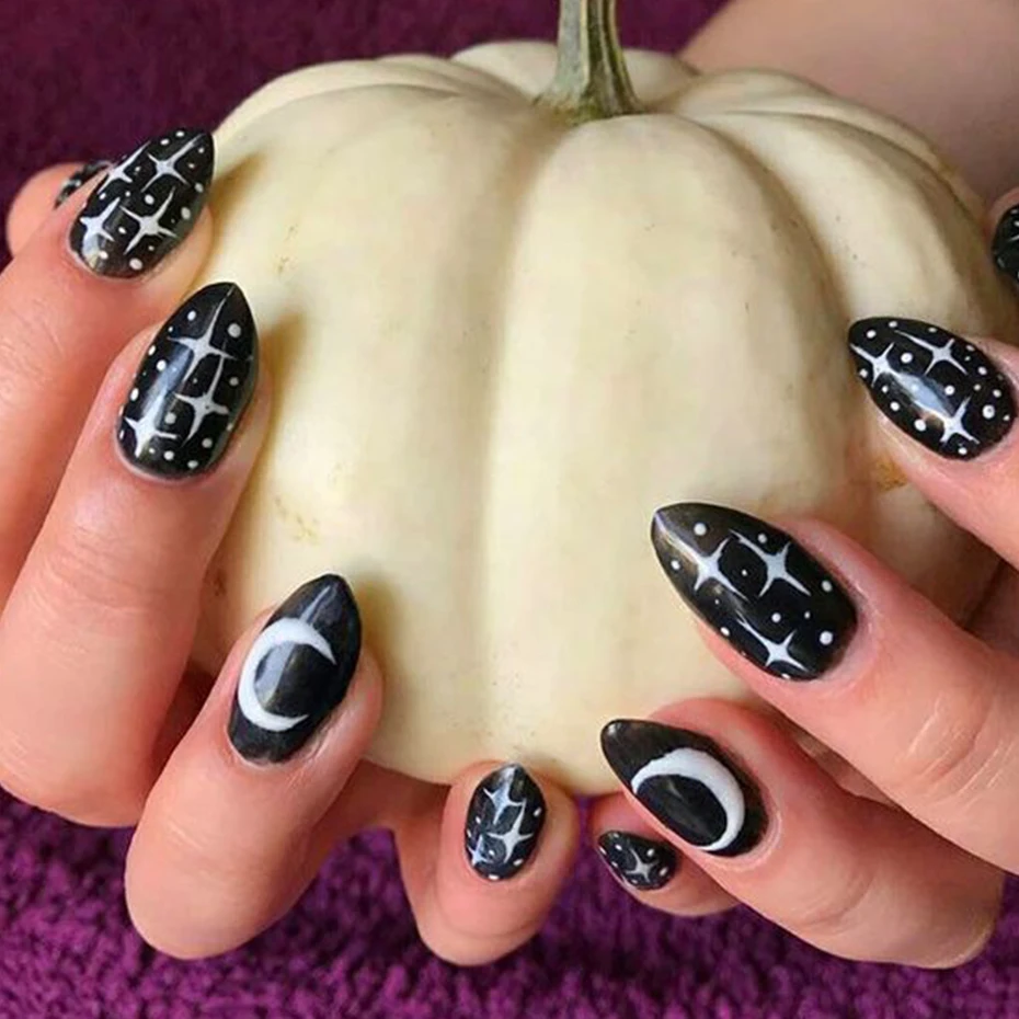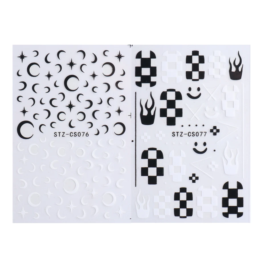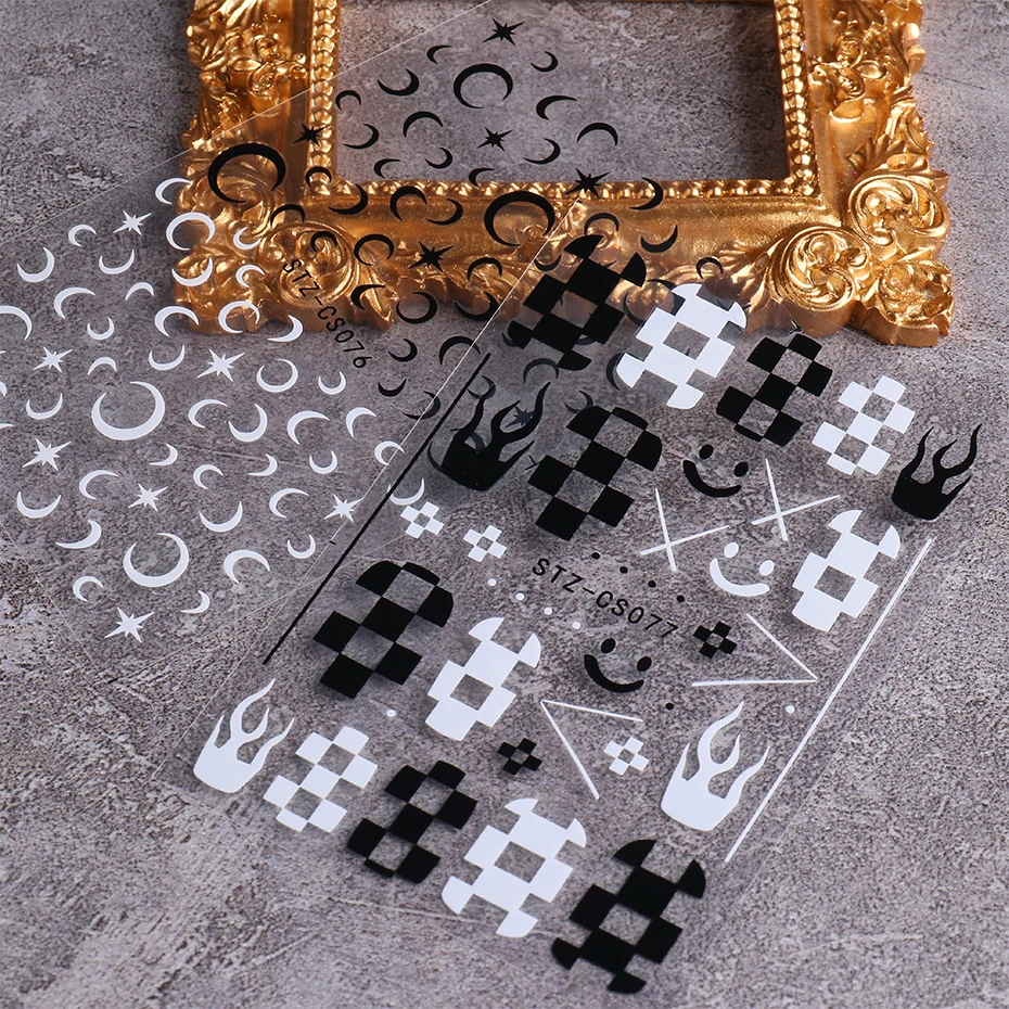 3D наклейки для дизайна ногтей с черно-белой Луной и звездой шахматная доска смайлик Пламя Дизайн ногтей узоры переводная наклейка для ногтей маникюр LESTZCS076