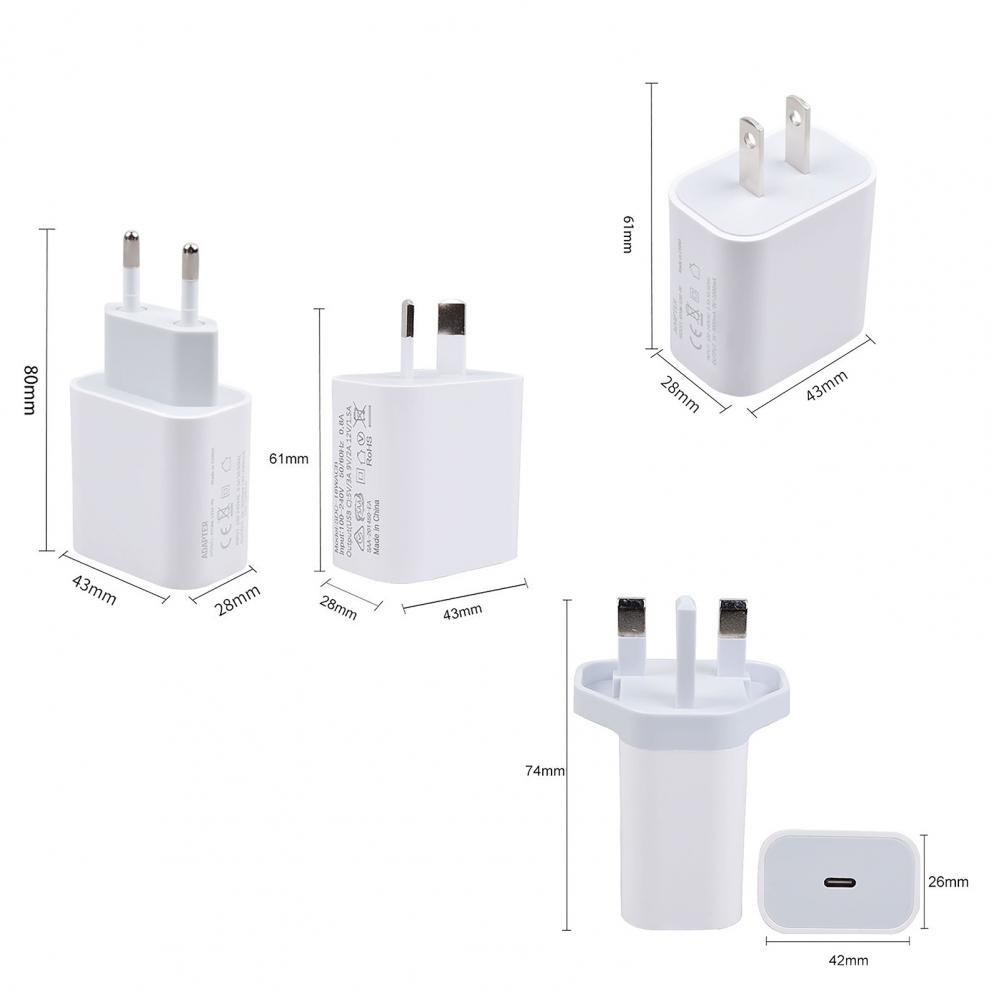 Длина зарядного устройства равен 6,1 см, ширина 4,3 см, а толщина-2,8 см.