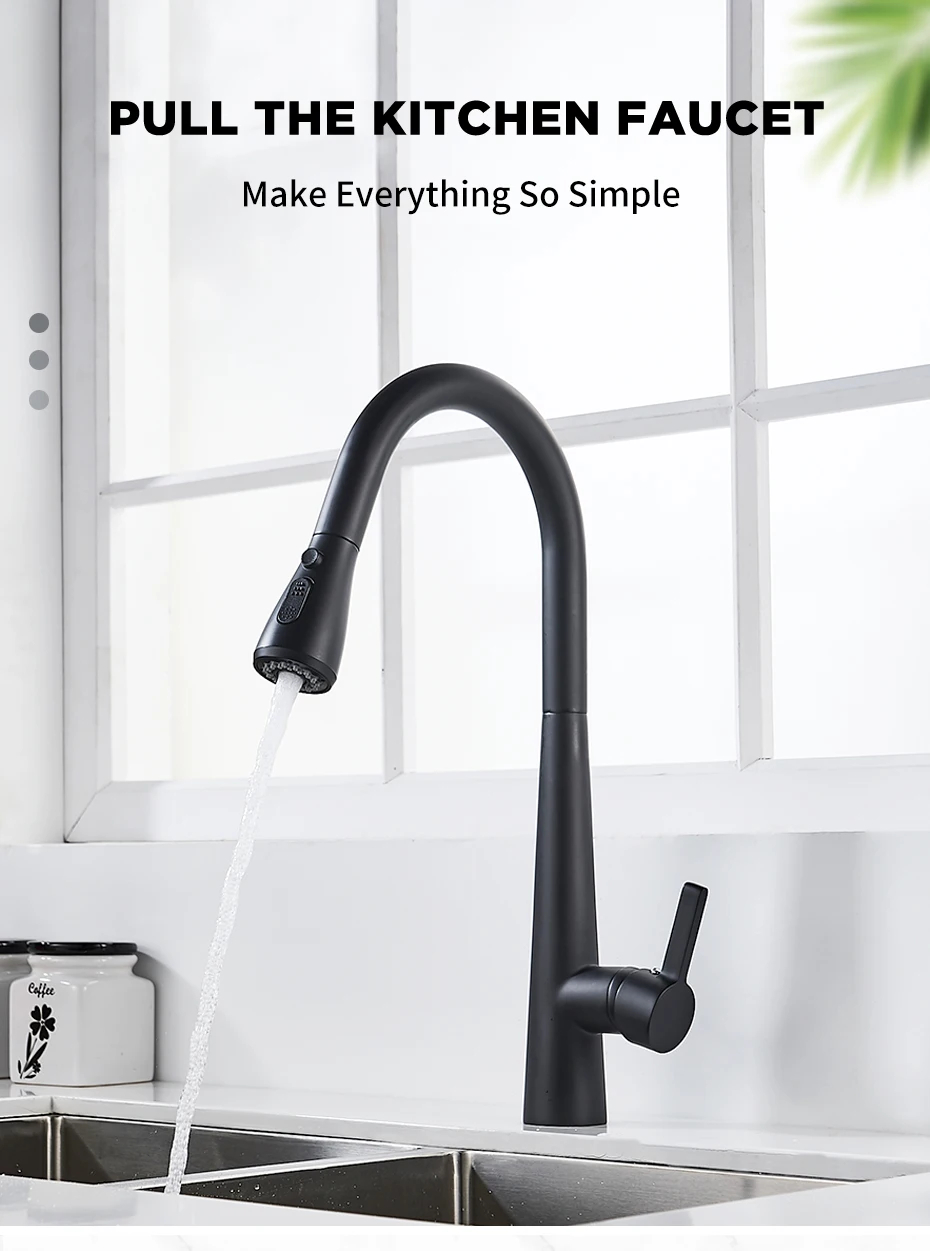 Черный кухонный кран с одной ручкой из твердой латуни выдвижной кухонный кран с одним отверстием Поворотный Смеситель для воды 360 градусов 866107