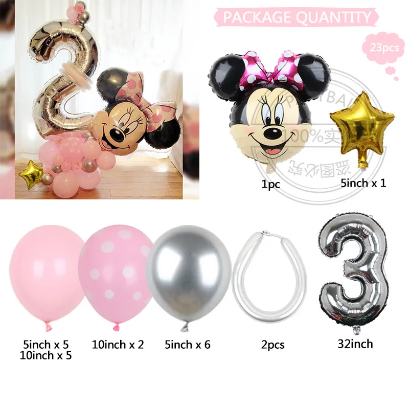 23 шт. Дисней Минни Маус фольги Воздушные шары набор 32 "Серебряный номер воздушный шар для девочек 1 2 3 день рождения Декорации детские Душ Globos