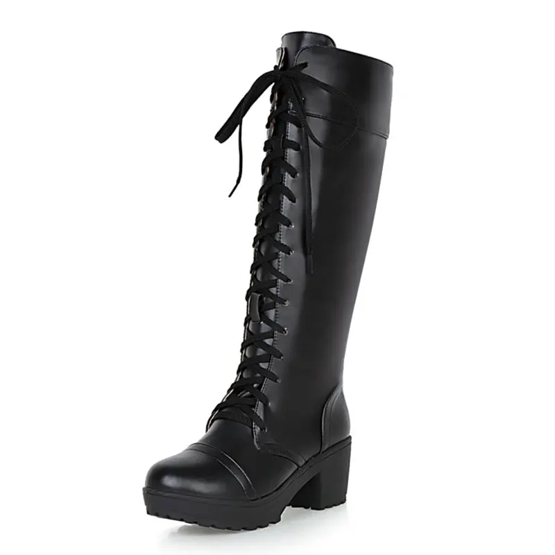 Женские сапоги до середины икры на платформе мотоциклетные в готическом стиле