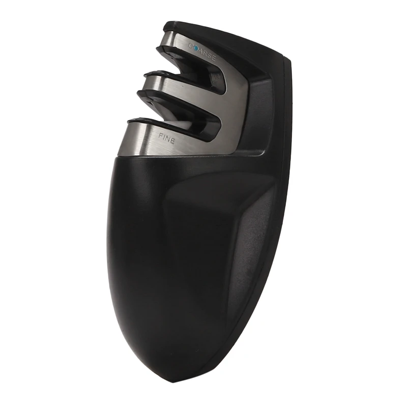 Акция! Портативный 2-ступенчатый Ножи точилка Кухня точилка для ножей с нескользящая подошва; Удобная ручка с защитой от скольжения, Кухня аксессуары черный