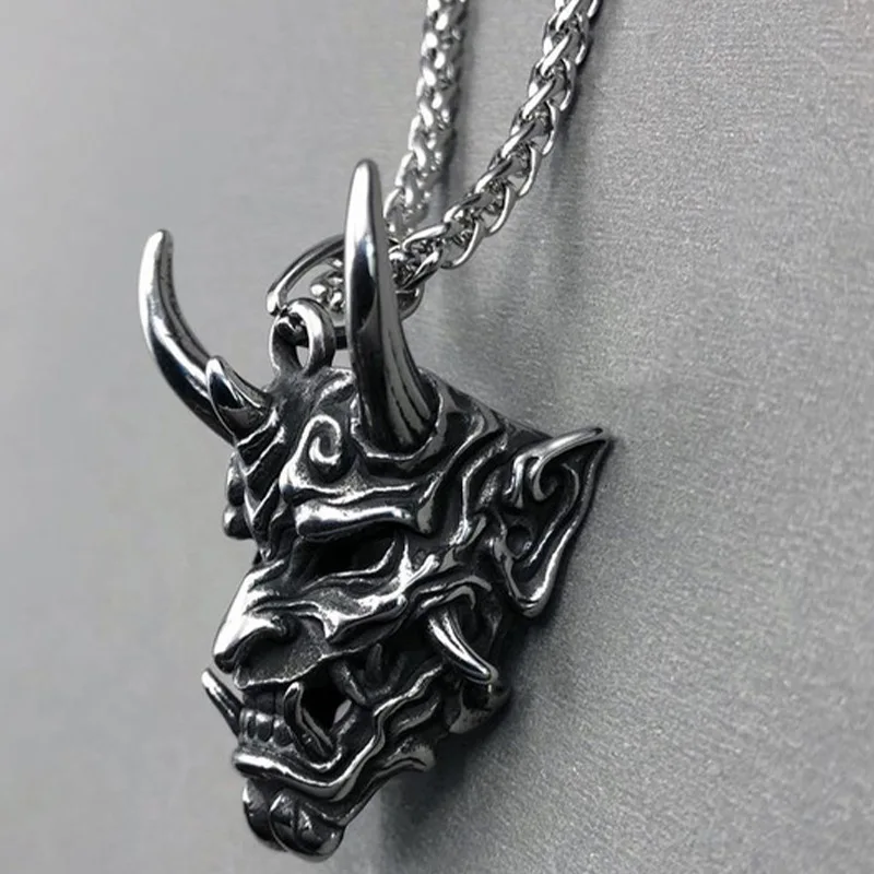 Vintage Mens Japanese Anger Hannya Ghost Skull Mask Pendant Necklace Gothic Punk Skull Necklace Rock Biker Jewelry Gifts For Him