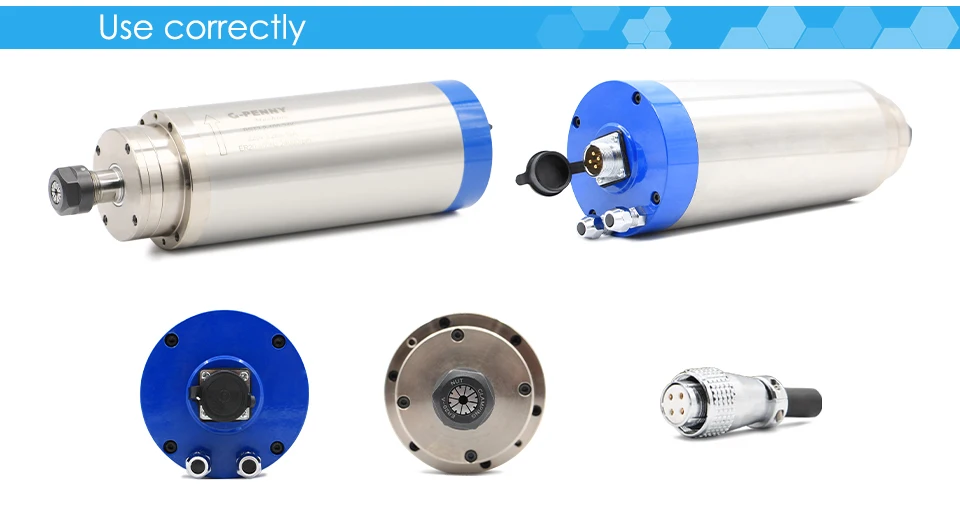 Перед использованием шпинделя с водяным охлаждением система охлаждения работает должным образом. Каждый день перед использованием шпинделя должен работать на низкой скорости в течение 15-20 минут. Прижимная фрезы к шпинделю, коллетным газам, коллетам, резакам должна быть достаточно чистой. Хвостовик, вставленный в Коллет, должен быть больше 15 мм.