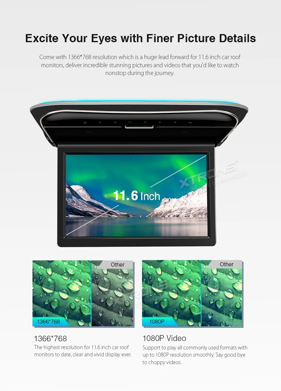 11,6 "16:9 и 4:3 режимы дисплея HD цифровой TFT экран ультра-тонкая Виртуальная сенсорная кнопка дизайн откидной автомобильный монитор крыши автомобиля на крышу автомобильный монитор со встроенным HDMI Вход и разрешение 1366*768 HD и поддержка видео 1080P и угол поворота 170 градусов, поддержка положительного и отрицательного управления дверью и поддержка внешнего цифрового ТВ-приемника и ИК/fm-передатчик Поддержка