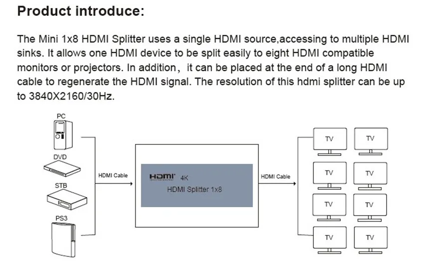 1 x HDMI Splitter 1x8