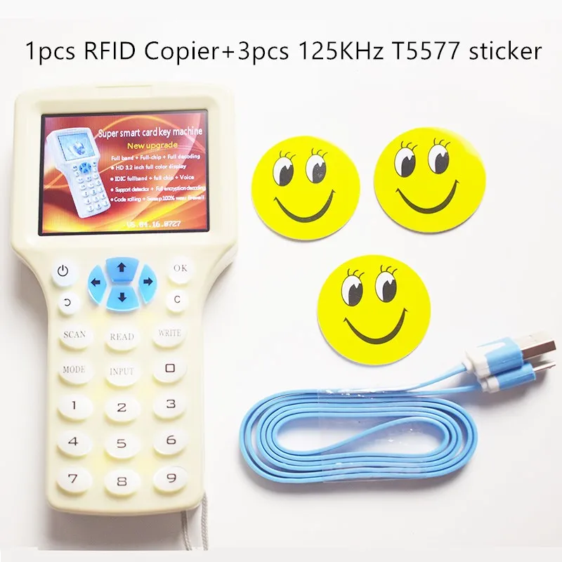 · 3) Поддержка частоты чтения: 125 кГц, 250 кГц, 500 кГц, 375 кГц, 625 кГц, 750 кГц, 875 кГц, 1000 кГц, 13,56 МГц (ISO1443A/B), карты HID Prox.