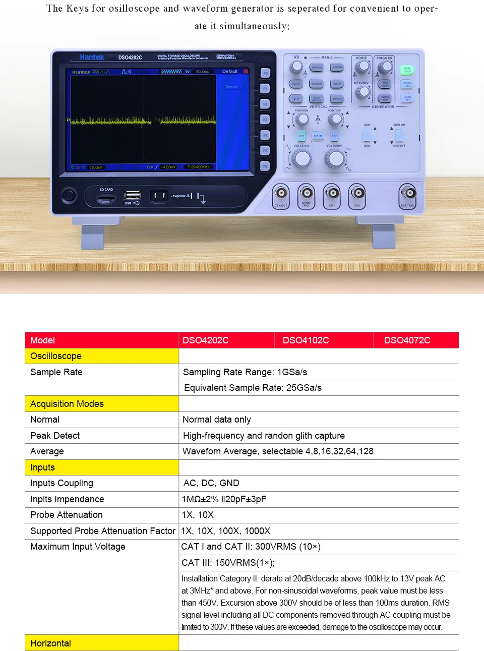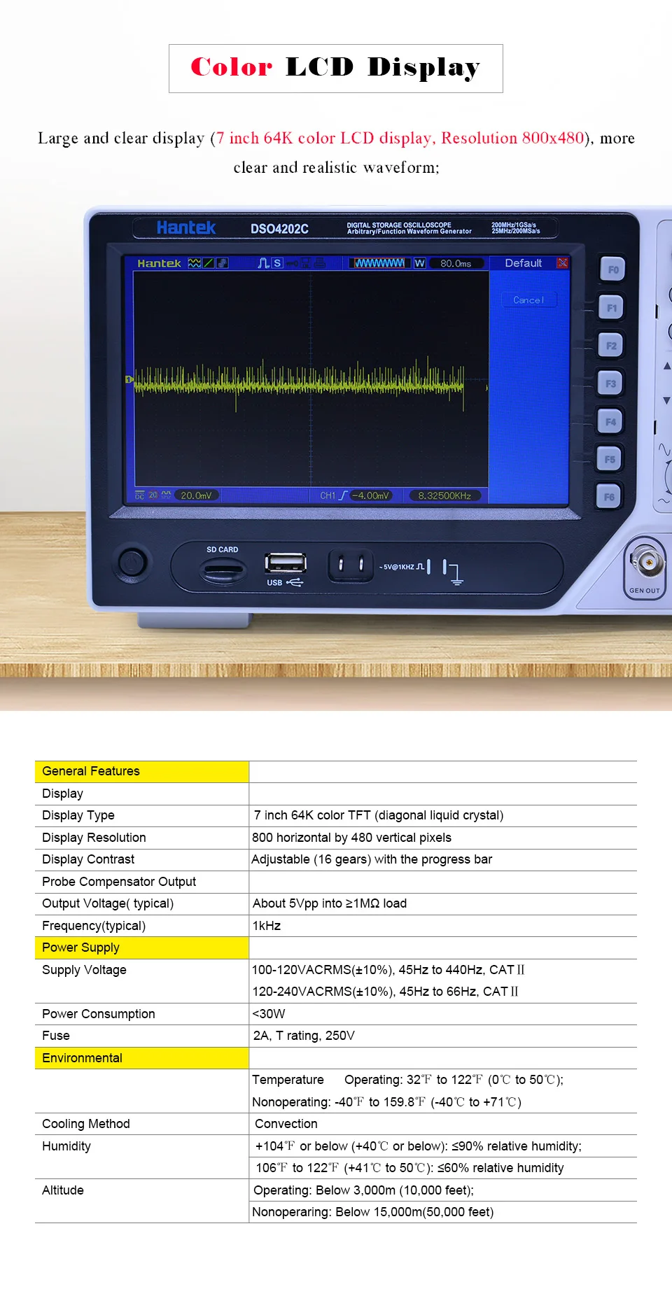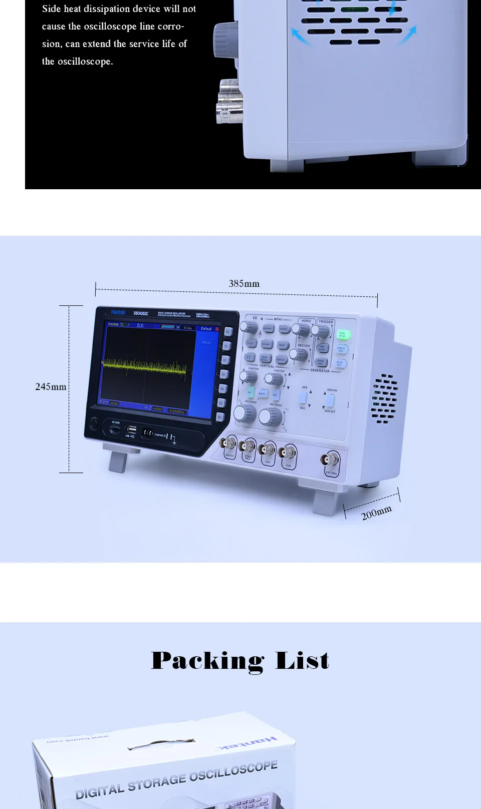 Hantek DSO4202C 2CH 200MHz цифровой запоминающий осциллограф с 1 канал произвольный/Функция генератор сигналов завод прямые продажи
