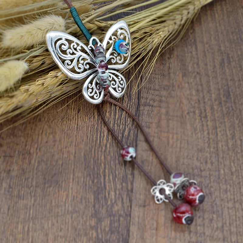 Модные ювелирные изделия, винтажное богемное ожерелье с подвеской из керамического камня, ручная работа, Длинные ожерелья с бабочками, бесплатная доставка, Nc126