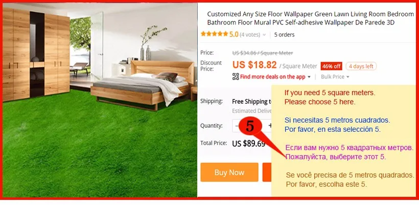 Количество 5: 5 квадратных метров = 250 см (Д) x 200 см (Ш) (8'2 "x 6'7") ft