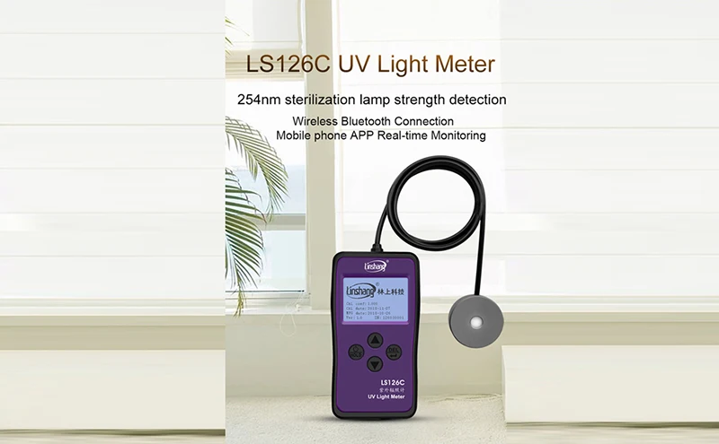 LS126C УФ-светильник является профессиональным инструментом для измерения интенсивности бактерицидных ламп UVC, то есть мощности ультрафиолетового излучения энергии на единицу площади. УФ радиометр поставляется с длиной 1 метр тестовый щуп в соответствии с длиной 1 метр испытания указываются в графе "WST 367-2012 регулирование дезинфекции техника в медицинских учреждениях" для того, чтобы обеспечить полный соответствие стандартам испытаний. Измеритель ультрафиолетового излучения LS126C также имеет функцию передачи данных Bluetooth. После подключения к приложению «мобильный телефон» он может отслеживать интенсивность бактерицидной лампы в режиме реального времени с определенного расстояния, чтобы избежать УФ-ожогов во время теста.