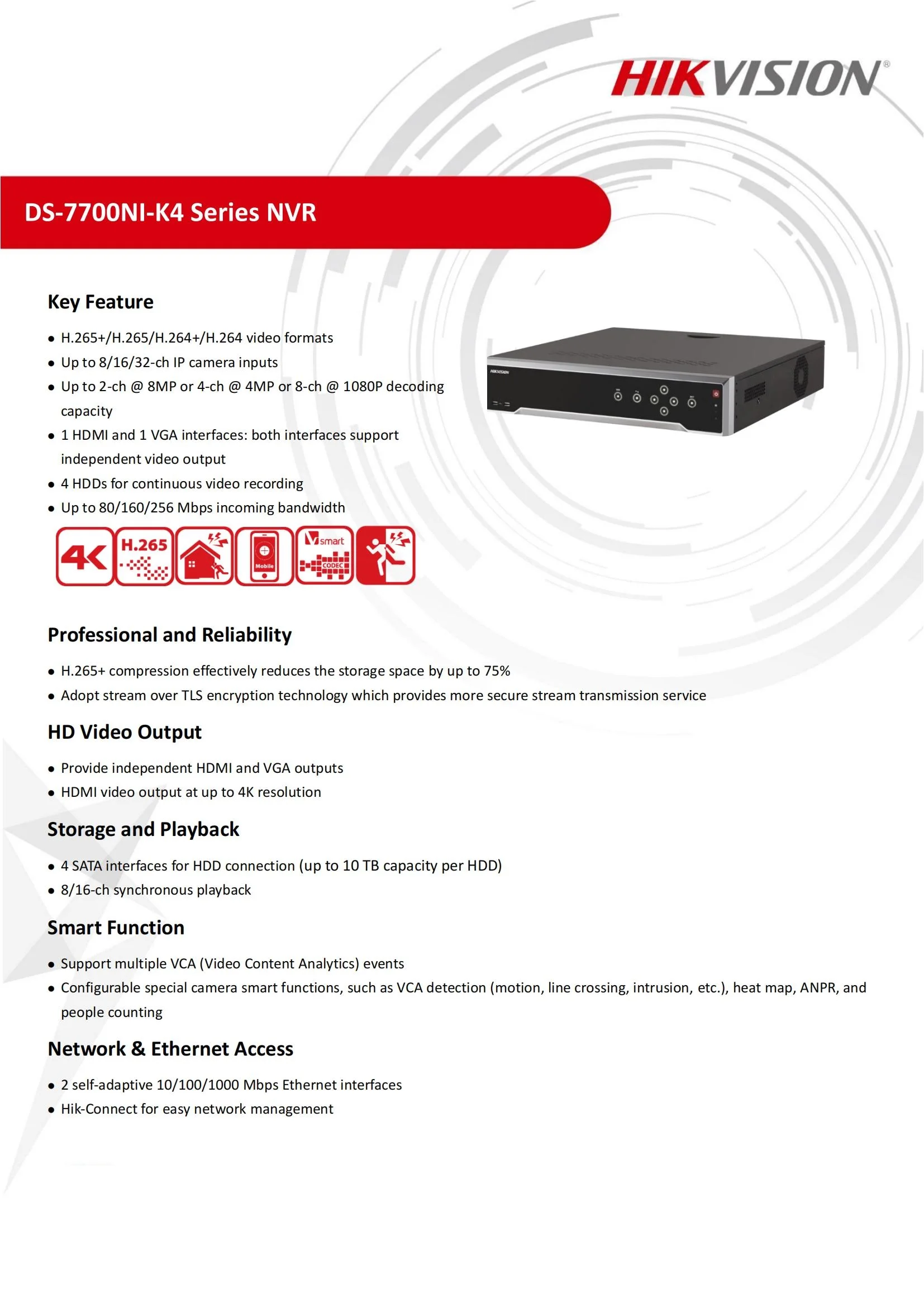Сетевой видеорегистратор DS-7732-NI-K4 , 32CH 4SATA