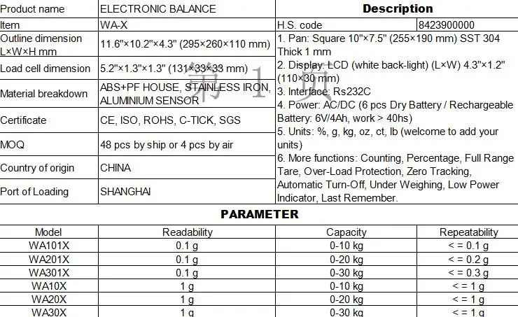 Калибровочный комплект весов: Mini. Принтер: