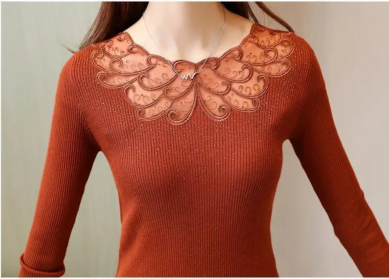 Модные ажурные женские свитера, вязаные с длинным рукавом, весна-осень, кружевные лоскутные пуловеры, сексуальные Блузы Mujer, боди-топ
