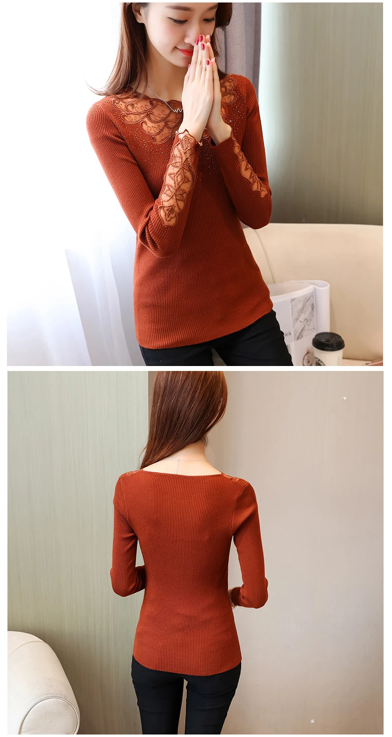 Стиль:Эластичный однотонный кружевной свитер