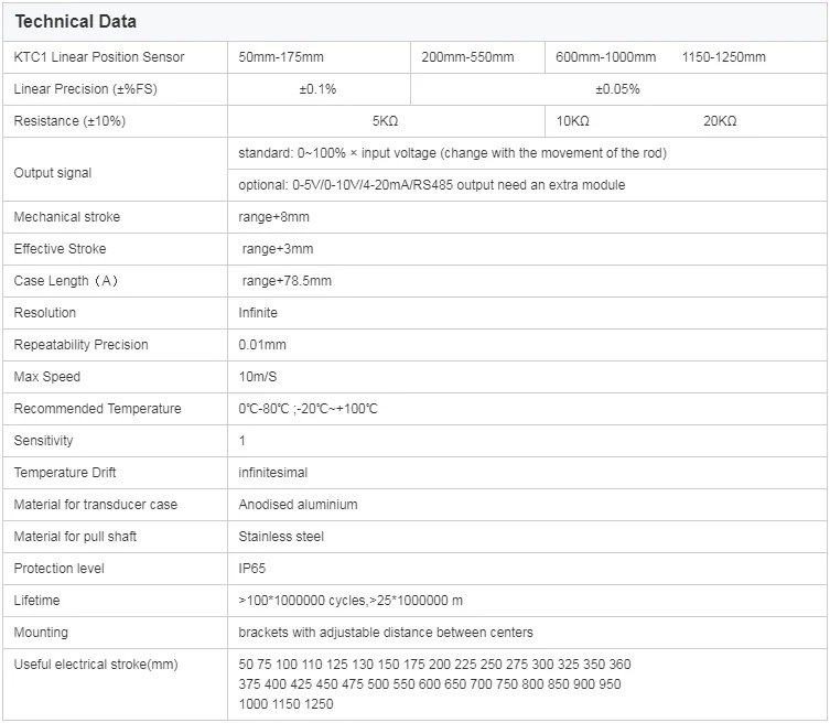 Miran Linear Potentiometer Transducer KTC 750~1250mm Long Range Resistive Displacement Sensor Used for Injection Molding Machine