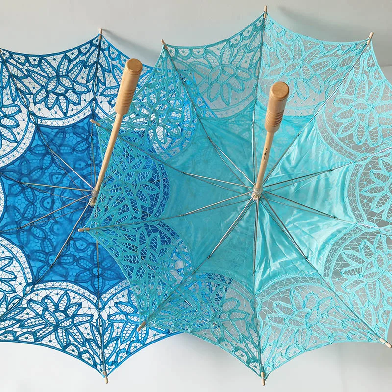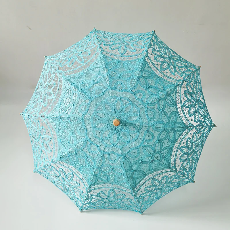 Женский зонтик из викторианского кружева, изысканно изготовленный из хлопкового кружева баттенбурга и вышивки. Имеет деревянный ручной Вал, с железными ребрами и прямой деревянной ручкой. Этот зонтик делает элегантный и яркий аксессуар к любому наряду, но не является водонепроницаемым.