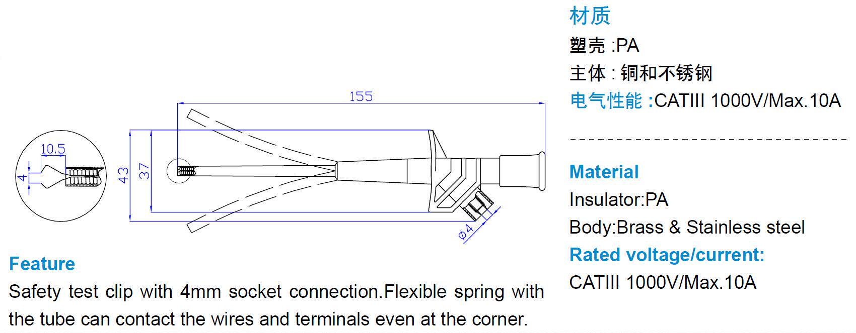 Характеристики продукта: 1. Полностью изолированный тест-крюк, нажмите тест-крючок, чтобы расширить, безопасно и легко работать.