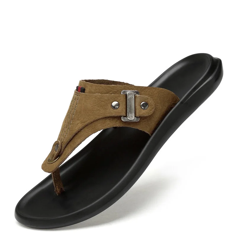 Мужские шлепанцы из натуральной кожи; Пляжная обувь; Мужские Вьетнамки; Летние шлепанцы на плоской подошве; Мужские шлепанцы роскошного размера плюс 45