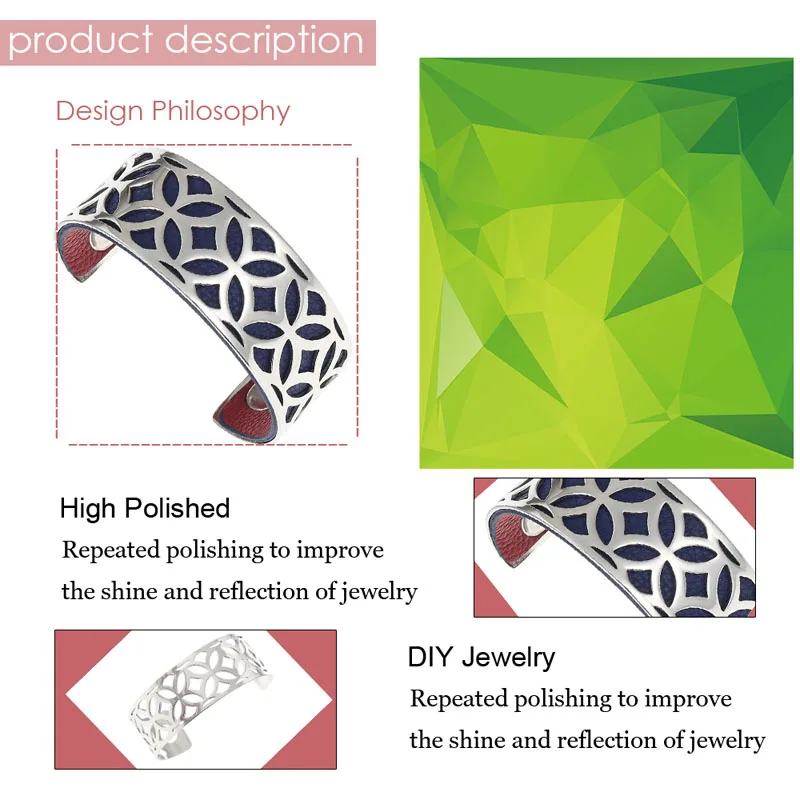 Подробная информация о продукте Тип Манжеты: браслет из нержавеющей стали. Материал: нержавеющая сталь + искусственная кожа. Пол: все женщины. Сатл: около 14 мм/15,5 г. Дизайн: двусторонний Браслет-манжета из искусственной кожи DIY. Повод: Свадьба, помолвка, годовщина, вечеринка, подарок на день Святого Валентина. Примечание: 1. DIY браслет ювелирные изделия, полированный, регулируемый, Реверсивный взаимозаменяемый ПУ кожа. 2. Комфортные ощущения при прикосновении. Уникальное творчество, один браслет, весь мир. 3. Мы стремимся производить высококачественные товары с гламурным, продуманным и креативным дизайном.