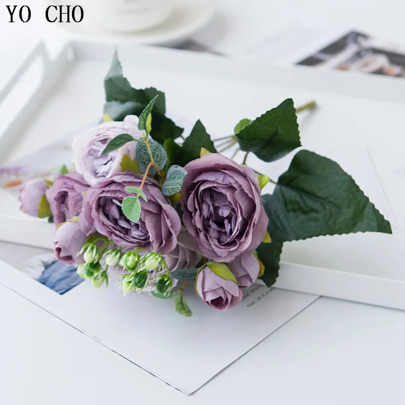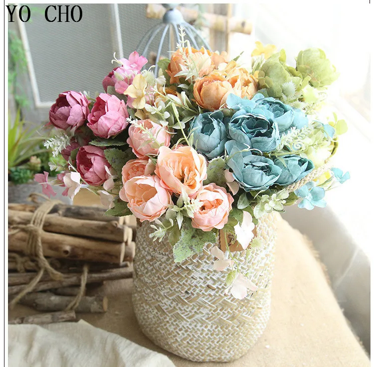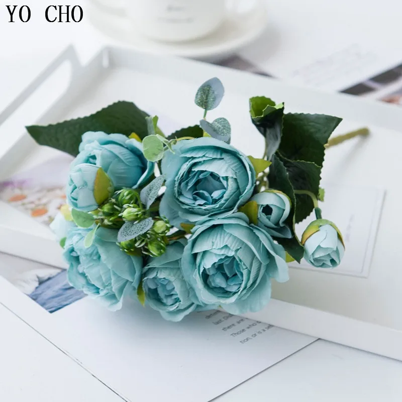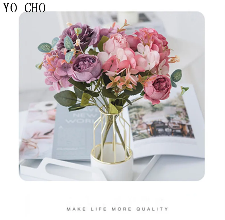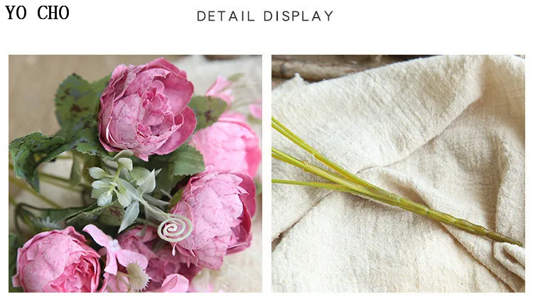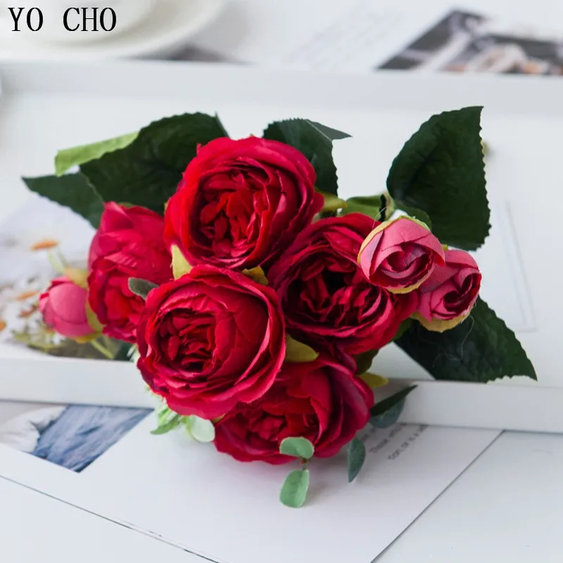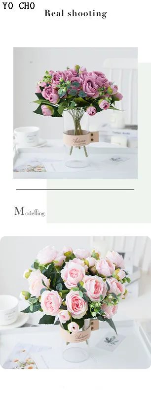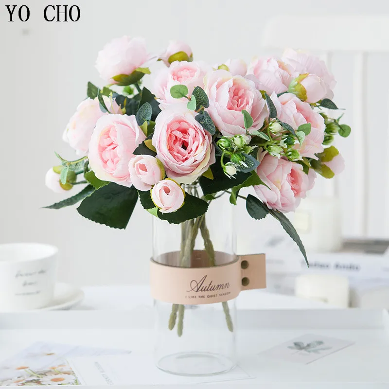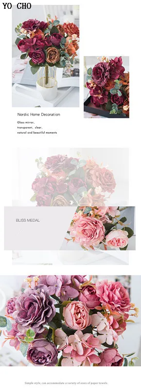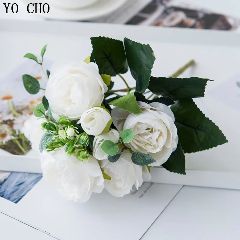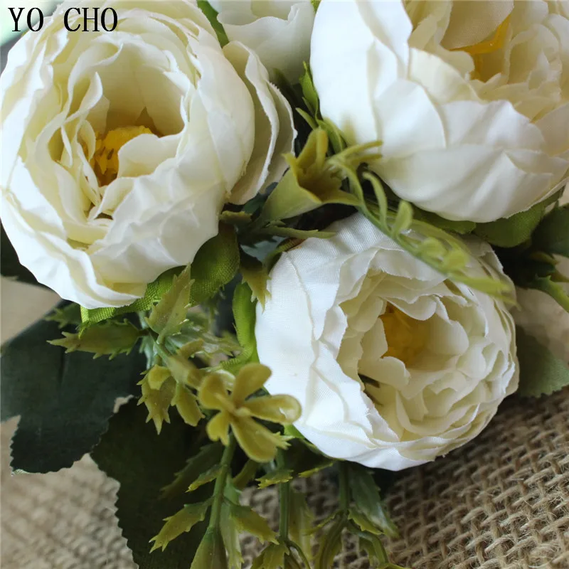 YO CHO 6 голов/Букет пионов, искусственные цветы, шелковые пионы Букет бело-розовый, свадебное украшение для дома, Искусственный Пион, цветок розы