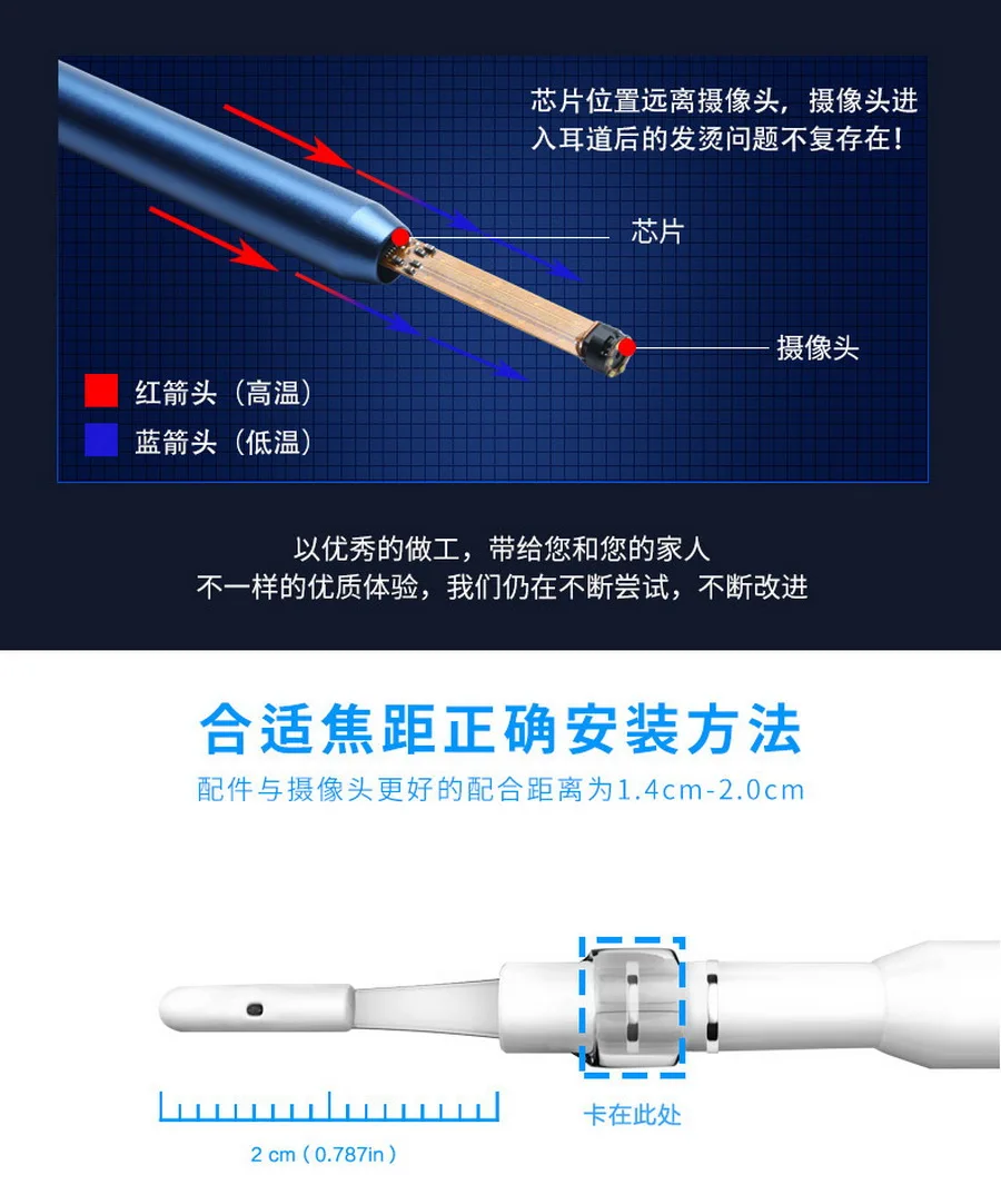 【Easy & Quick Home Ear Exam】 As your ears are itchy or swelling, Different adapters in size accommodate brief ear exams for adults to find the reason for the scratchy symptom. 【Convertible Connection Design, Working with Android Devices, Windows & MAC PC】 The otoscope can be compatible with Android 4.5+ devices, Windows 7/8/10 & MAC OS10.6+ PC, but not work with iPhone or iPad, and you can see the situation in your ear, clearly displayed on your smart phone, tablet or your computer. Then, the ear wax or ear mite can be cleaned more completely and safely with this guidance. 【6-Level Adjustable LED Brightness Optimizing the Image& Video】 Tympanic membrane check will certainly contain darkness and the light will be necessary. Adjusting LED light,the Depstech otoscope user can obtain real image and live video from close observation. 【2m Length Multiplying the Applications】Not only do your ears will stocking the wax and mite, but your dogs, cats as well. The cable will be conducive to examining theirs to protect your pairing devices from their carelessly tantalizing action at some distance. Specification: Type: Visual Ear Cleaner Color: Blue Material: Metal + Plastic pixel:1.3 million resolution: 720*640 Camera diameter:5.5mm Light:6 Leds Brightness: Adjustable Interface: Type-C, Android, USB Camera focal length:1.4cm-2cm viewing angle:54° Camera Length: 15cm (Approx.) Cable Length: 2m picture format:JPEG video format:AVI support system:Android 4.2 and above/widows/mac Note: 1.Please make sure your phone can support OTG functionality and also compatible with the UVC ( USB video device class) before you buy it .because some of the phone can shielded external camera. (most of recently version of android device have this function,if you not sure it can suit ,please confirm it first before you buy it ) 2. The medical endoscope is a near focal length product, when take picture too close or too far can be very vague, the best focal length is about : 1.5 cm .The farther away from the observation, the lower the clarity of the image |