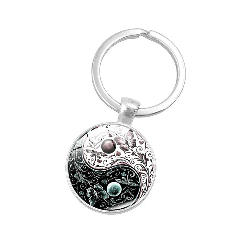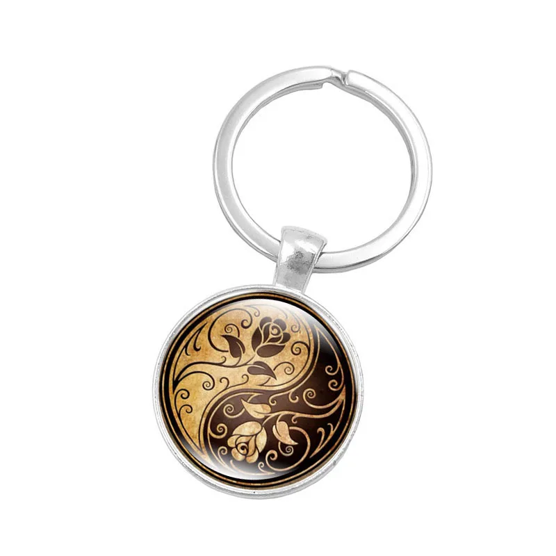 IKSNAIL 2018 новые винтажные брелки Yin Yang тайцзи тайм драгоценный камень металлический кулон Porte Clef горячий отпечаток лапки щенка брелоки автомобильные брелки для ключей