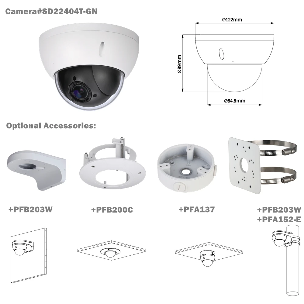 1. SD22404T-GN 4 МП PTZ 4X оптический зум высокоскоростной купол