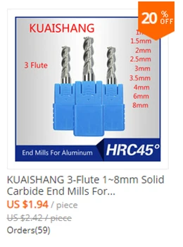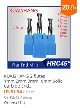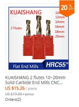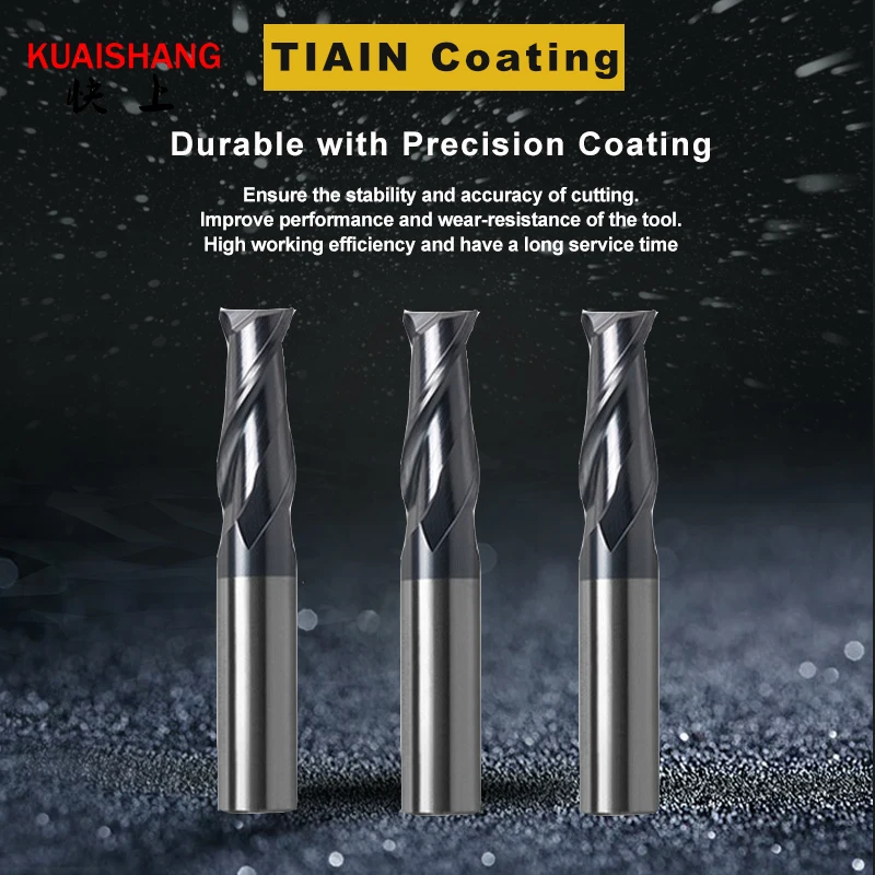Бренд: kuaishang Материал: Вольфрам сталь Тип конца: плоские концевые фрезы Высокая отключающая способность: 45 градусов Покрытие: TiAIN Канавки: 2-флейта Страна/регион производства: Китай
