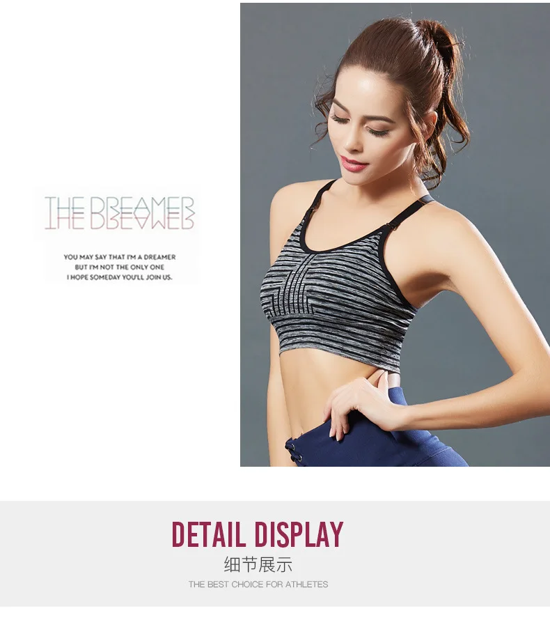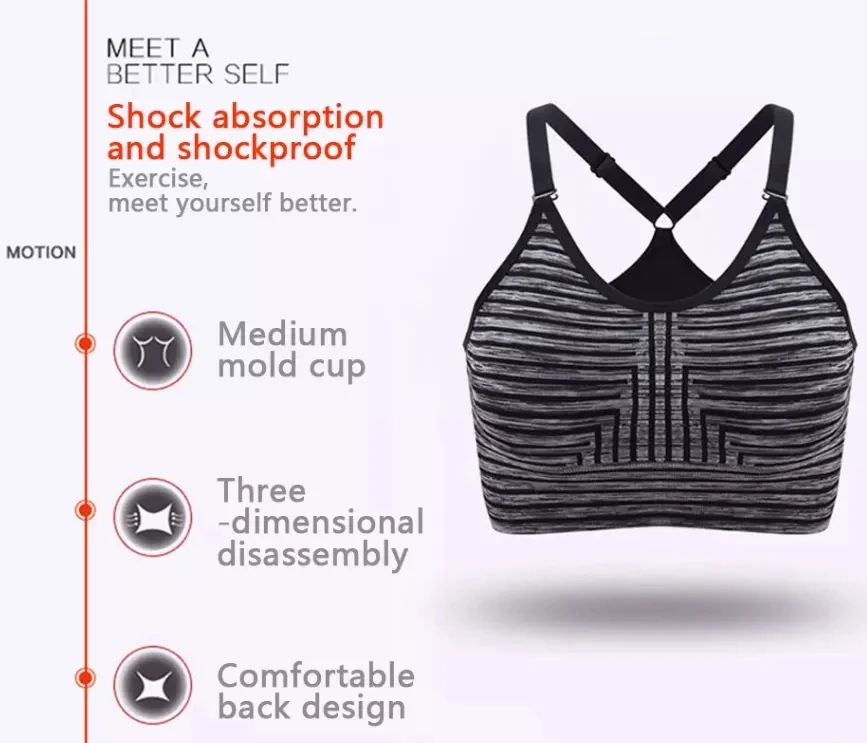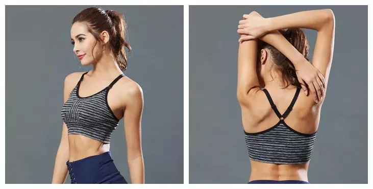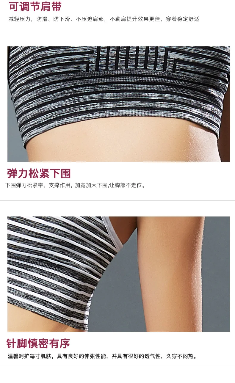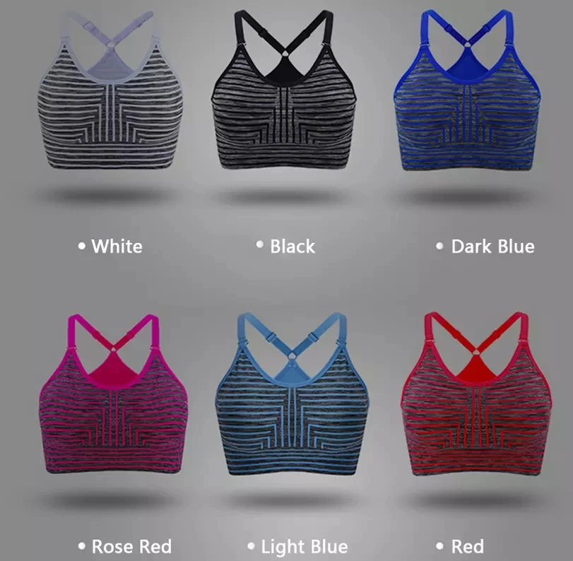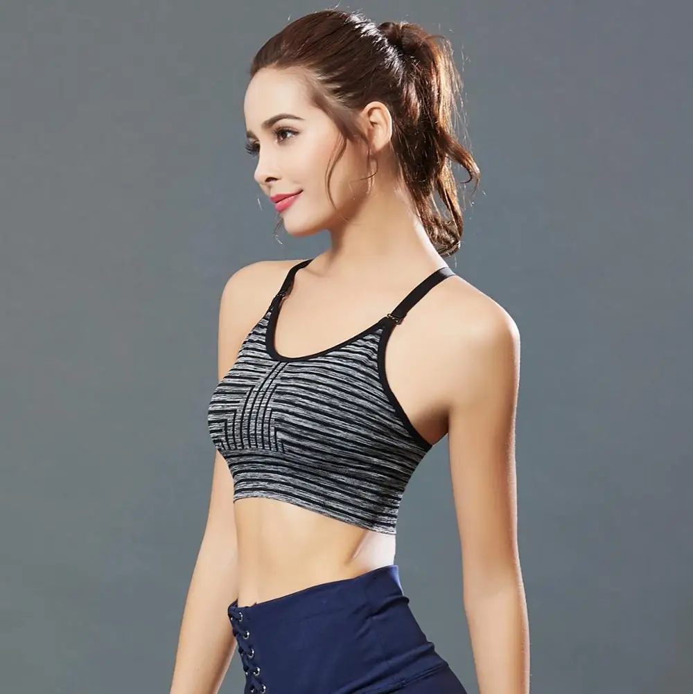 Женский дышащий бюстгальтер в полоску, оптовая продажа, бюстгальтер для йоги тренажерного зала, спортивный бюстгальтер без бретелек, бесшовный спортивный бюстгальтер