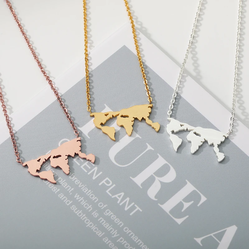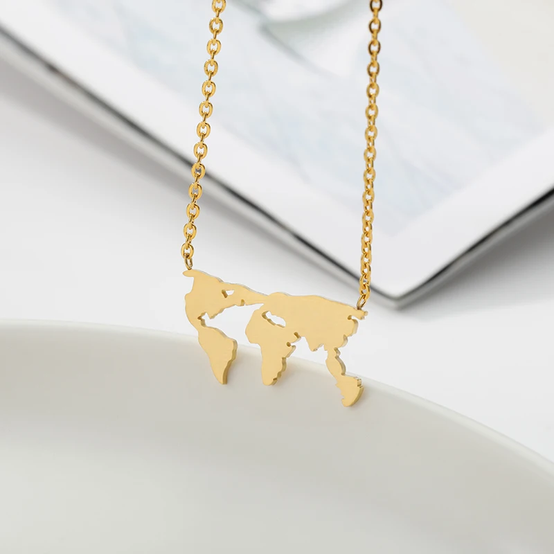 Ожерелье с изображением карты мира для женщин, модное ювелирное изделие, позолоченное многослойное ожерелье из нержавеющей стали, подарок для лучшего друга
