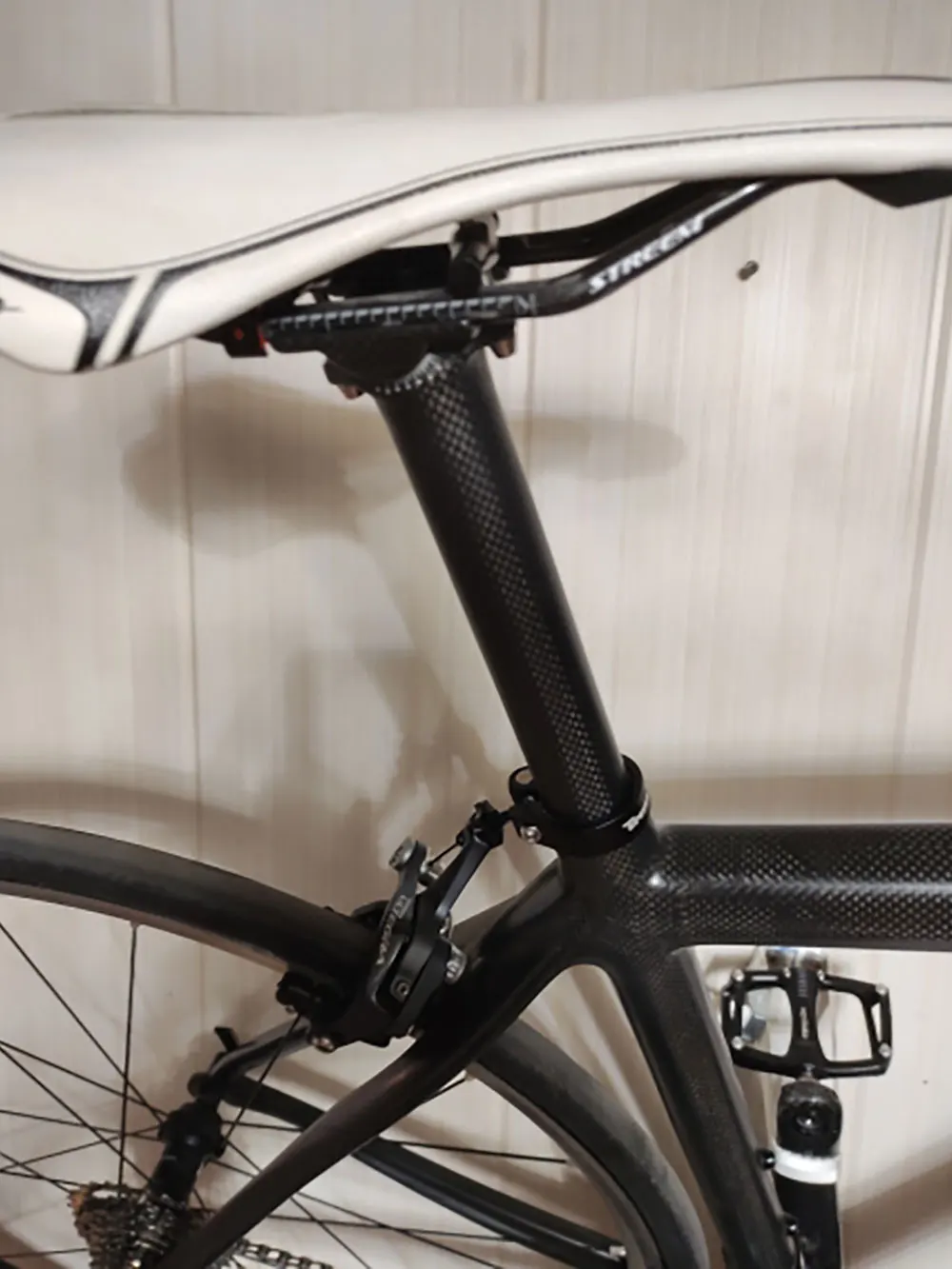 Зажимная конструкция проходит через основание из углеродного волокна и титановые винты для защиты рейки седла и снижения веса.