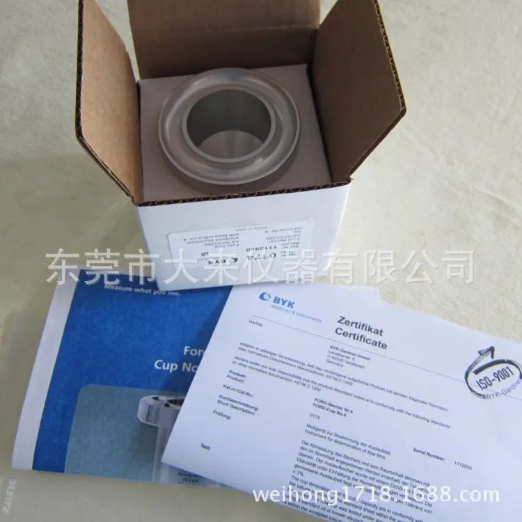 Used for measuring low viscosity; Anodized alumina cup body; Internally polished stainless steel nozzle; After standard oil calibration, standard oil refers to authorized PTB oil;
