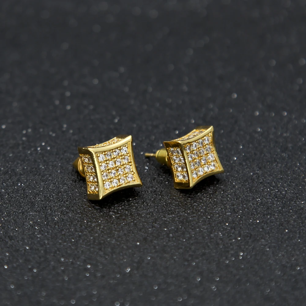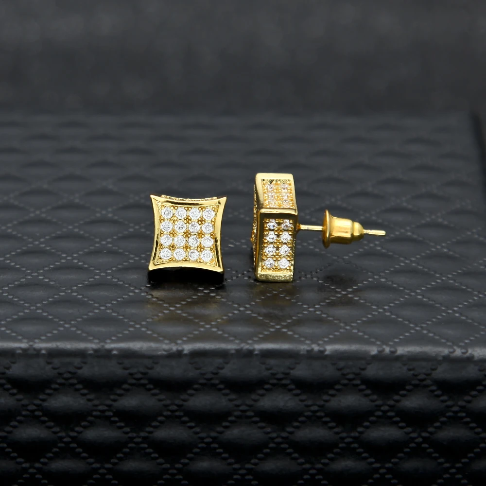 TBTK Золотые Квадратные серьги-гвоздики медный материал с сияющими сверкающими кристаллами циркония серьги в стиле Панк Бижутерия для мужчин