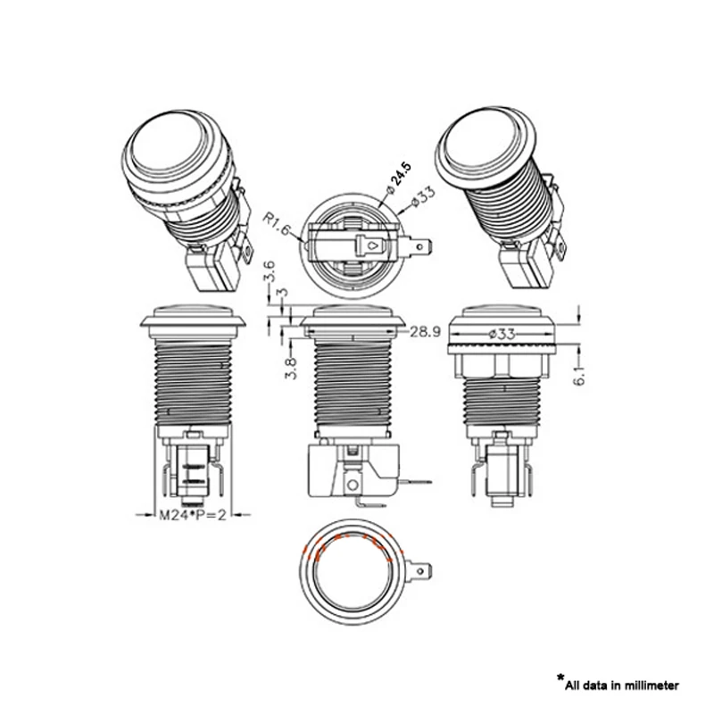 Поставляется в комплекте с светодиодный, гайкой и микропереключателем