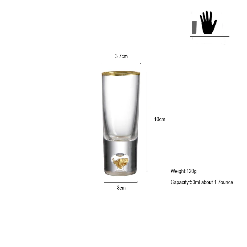 Набор из 6 предметов, 50 мл, роскошная Золотая оправа, тяжелая основа, ручная работа, бессвинцовое Хрустальное стекло для водки с пузырьком 1,7 oz