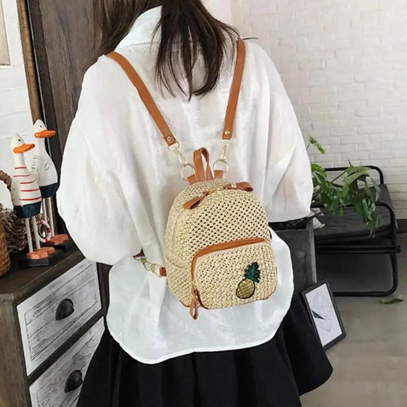Маленькие дорожные рюкзаки с принтом ананаса, Женские соломенные тканые школьные сумки на плечо, повседневный рюкзак, вязаный рюкзак, сумки-мессенджеры через плечо