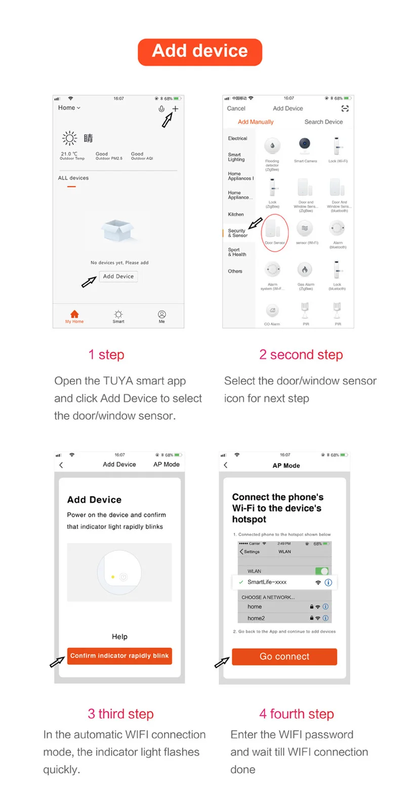 Совместимость с Alexa и Google Home: Просто используйте свой голос для управления подключенными устройствами Alexa или Google Home. Он также может выполнять автоматическое управление вместе с другими смарт-устройствами, которые совместимы с Умной жизнью. Удобно для обнаружения ваших дверей, окон, шкафов, ящиков или в любом месте, где вы хотите получить уведомление, когда он открыт или закрыт.