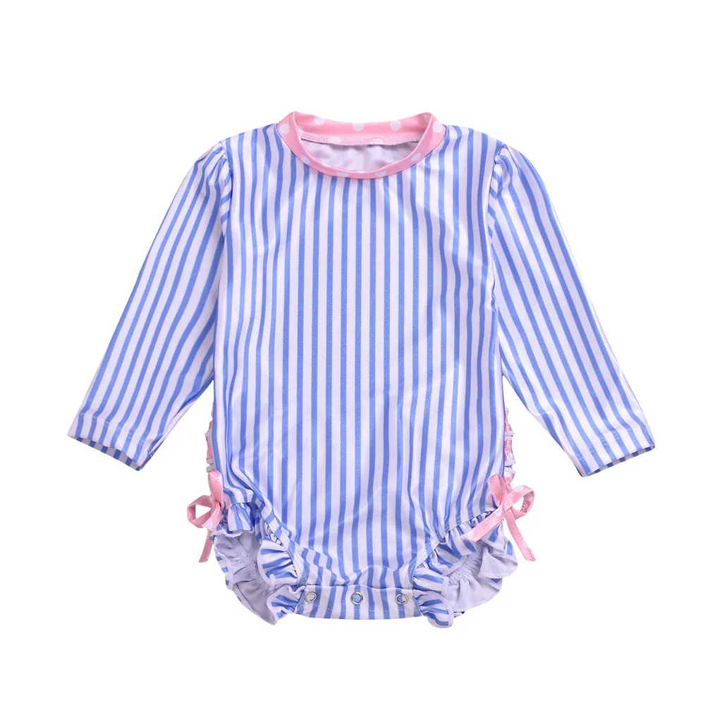 Kids Baby Girl Ruffled Dot Striped Swimsuit with Sun Protection Swimwear