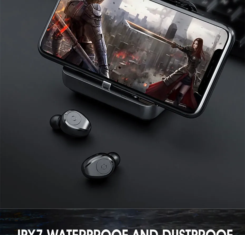 Номер моделиF9Brand NameH&AFunctionFor Mobile PhoneFunctionfor Video GameFunctionHiFi HeadphoneFunctionSportFunctionCommon HeadphoneFunctionMonitor HeadphoneFunctionFor Internet BarWaterproofYesCommunicationWirelessSupport Memory CardNoSupport APPNoActive Noise-CancellationNoCodecsNONEConnectorsUSBSensitivity120±3dBStyleHeadphoneWith MicrophoneYesPlug TypeБеспроводнойFrequency Response Range20-24000HzLine LengthNoneResistance32ΩIs wirelessYesWireless TypebluetoothVocalism PrincipleDynamicControl ButtonYesVolume ControlNoMeasurement unit100000015Each pack1NameF9 TWS Wireless Bluetooth HeadphonesColorsBlackFeature 1Bluetooth V5.0 + IPX7 Waterproof + 1200mAh Charging CaseFeature 2Power Display + Auto Pairing + Fast ChargingCharging Box Capacity1200mAhBluetooth VersionBluetooth V5.0Operation DistanceAround 10mPlay TimeAround 4-5 hoursStanby TimeAround 200 DaysDropshipping/WholesalesSupport