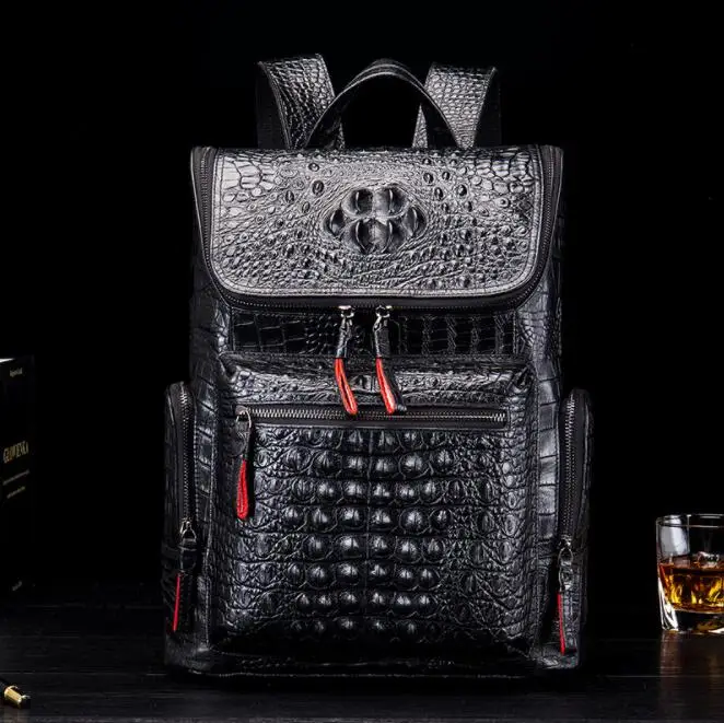 Высококачественный деловой рюкзак из воловьей кожи, модный мужской рюкзак с крокодиловым узором, чистый черный Многофункциональный роскошный рюкзак