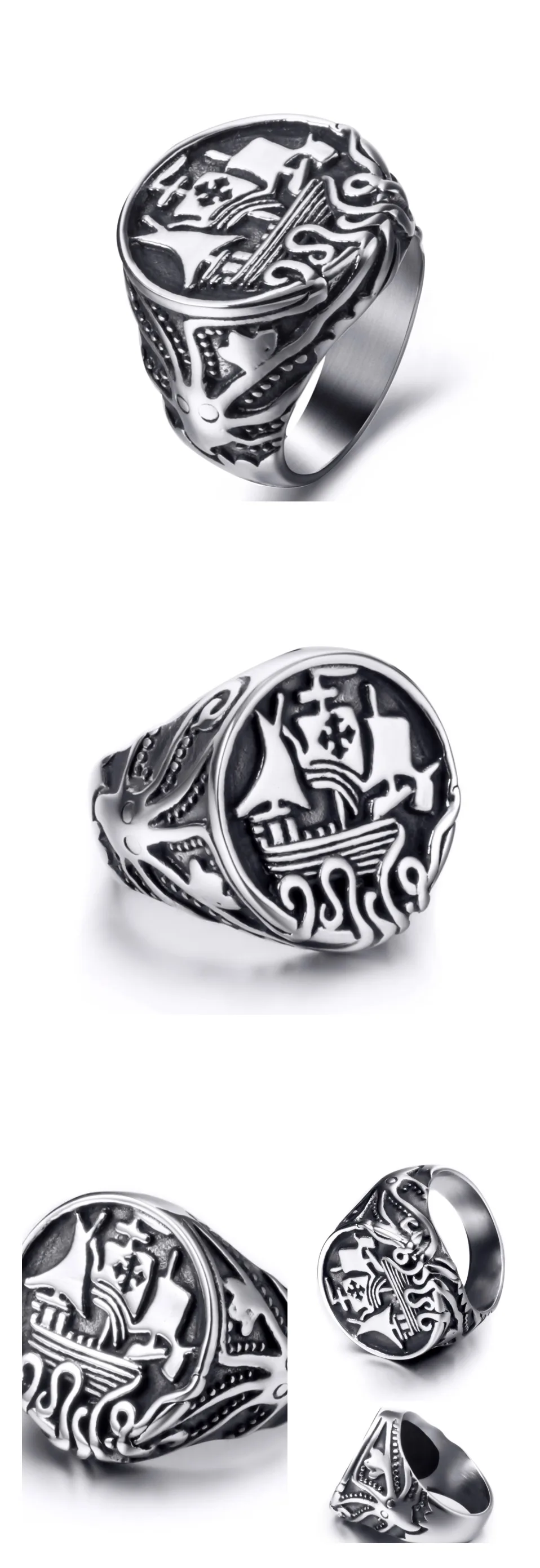 Elfasio Viking Drakkar корабль Kraken Norse Sea Monster Octopus щупальца кальмара из нержавеющей стали Винтажное кольцо